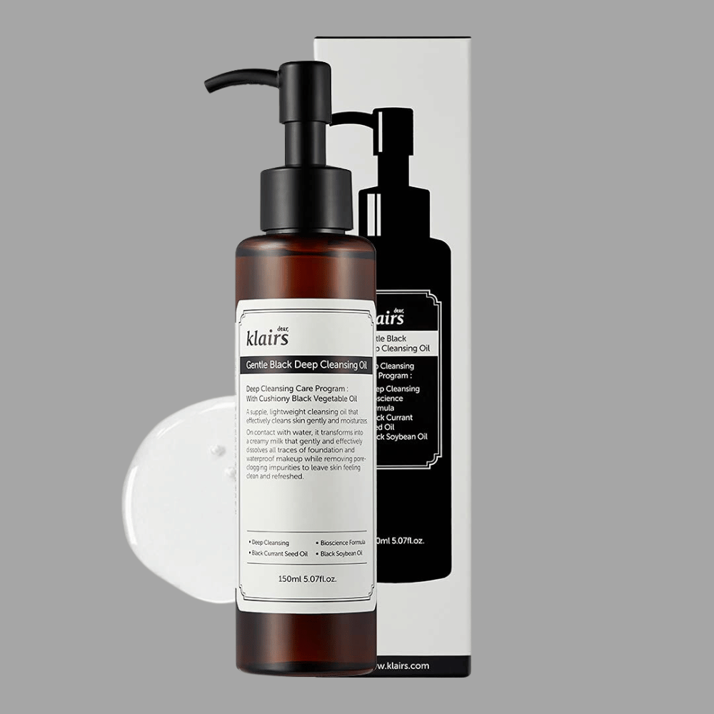 Product recommendation: Klairs Gentle Black Deep Cleansing Oil is formulated with black sesame oil, black currant seed oil, and jojoba oil, providing deep hydration for dry skin types. Its gentle formula effectively removes makeup and impurities, leaving the skin feeling nourished and moisturized.